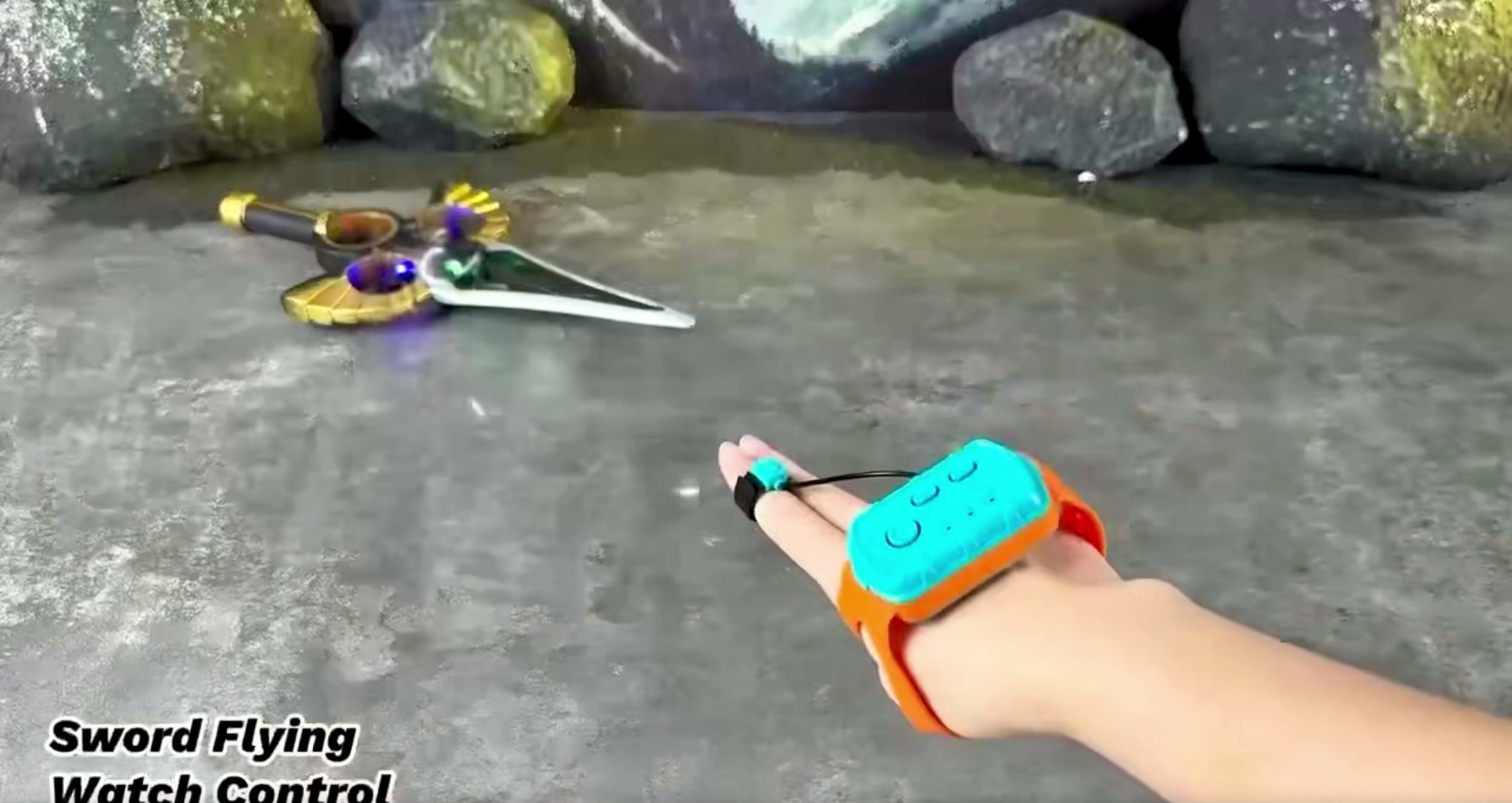 A remote-controlled flying sword that performs 360° stunts and follows your hand gestures.